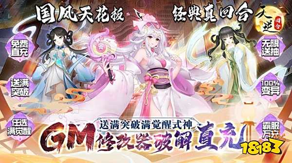 《天逆(送满突破刷充)》是一款全新以封神为题材的国风回合制手游,游戏上线充值点、式神百连抽以及打金特权!升级送两万充值,升级送满突破式神,活动送满觉醒式神,0氪也能养成拉满!打金特权只需完成任务、参与活动即可获得海量直充点,免费直充,元宝直充、月卡、终身卡、投资基金、直购礼包全部GM修改器免费激活!100%变异、海量幻化时装仅需登录即可免费获取!支持跨服组队,打造良好生态,再也不担心活动找不到队友参与活动,让您享受最舒适的回合制乐趣!