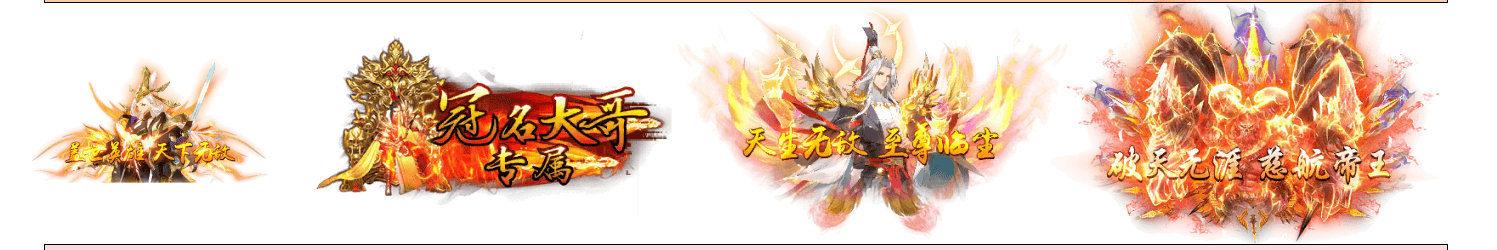 《冠名大哥专属》《盖世英雄 天下无敌》《破天无涯 慈航帝王》《天生无敌 至尊临尘》