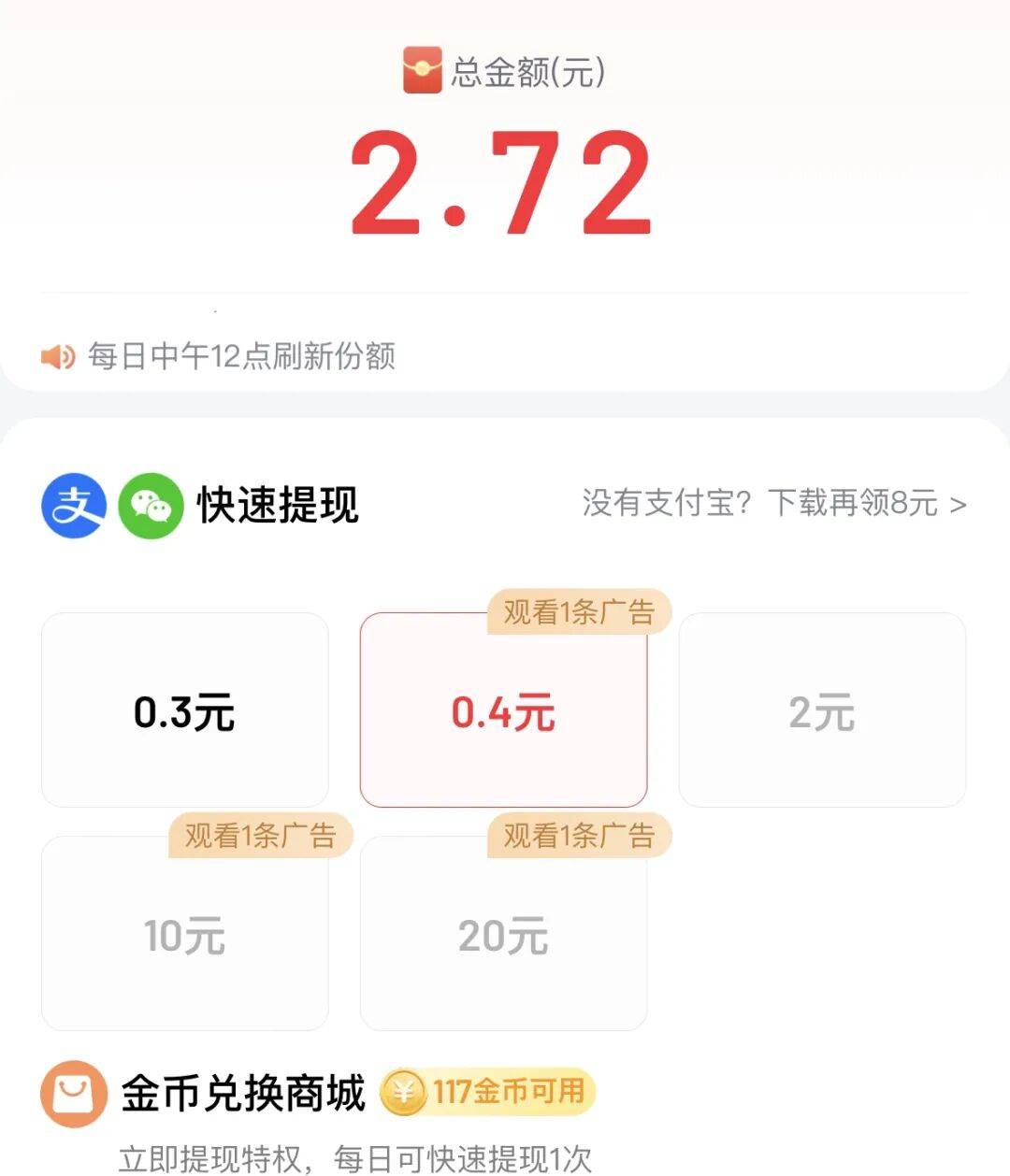 比如还有某巨头平台的提现活动,纵使账户有2.27元,但只能提现4毛钱,想提现提醒要再看一条视频。