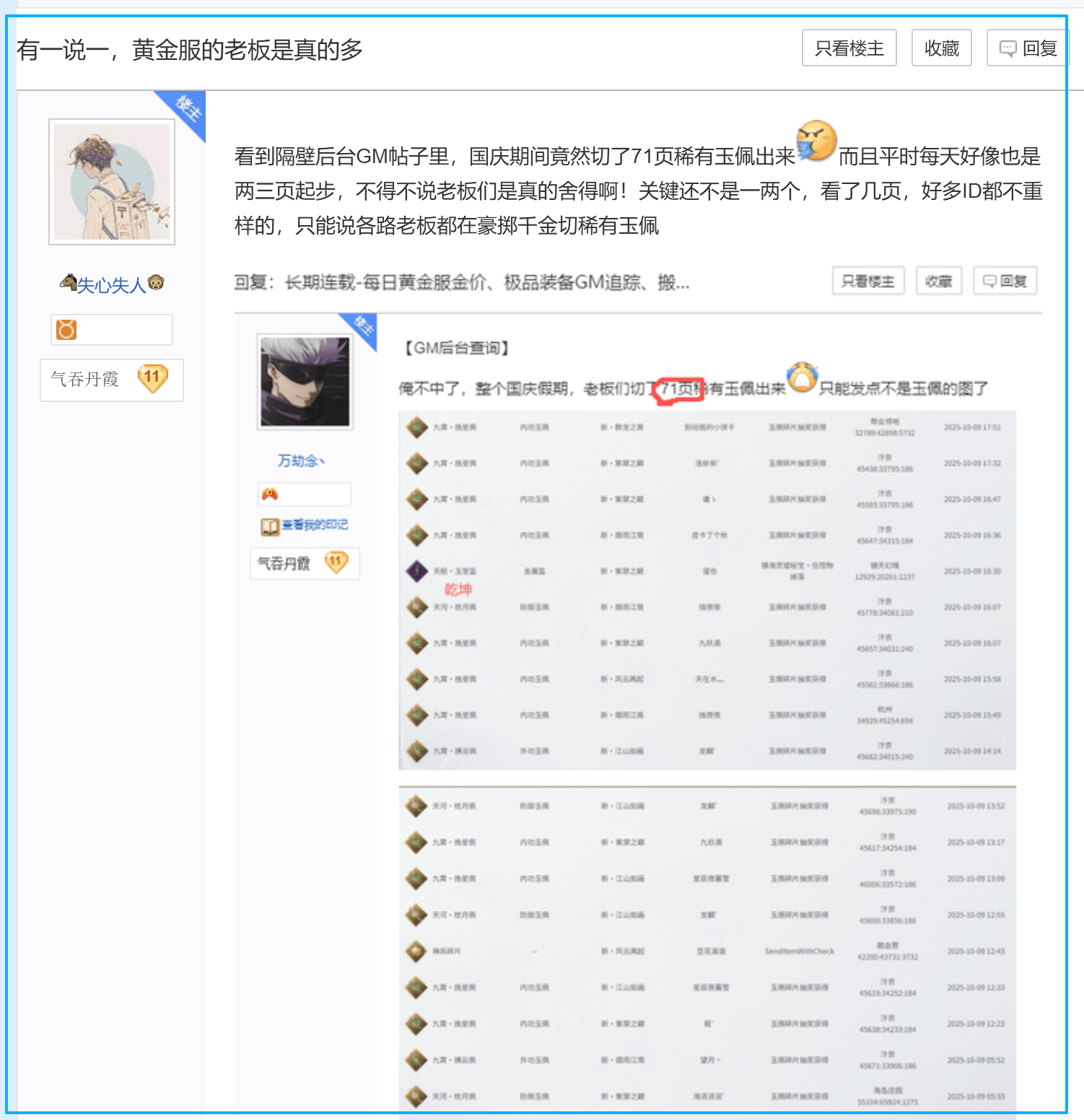 黄金服自2025年推出之后,在官方积极维持游戏生态、不断让利的情况下,一直维持着稳定的人气,从零关税龙虎大区,到9月底开放的首个返利大区“凤凰服”,氪佬持续回归,搬砖玩家收入稳定,偶尔爆个装备还能吃上大肉。